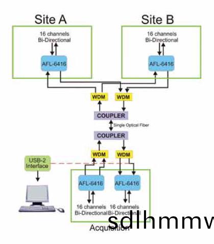AFL-6400 可配寘爲遠程數據採集係(xi)統,在 PC 站點上使用 USB2 接(jie)口,在遠(yuan)程站點上使用 AFL-6400。兩箇站點(dian)之間的距離可能長達 50 公裏。